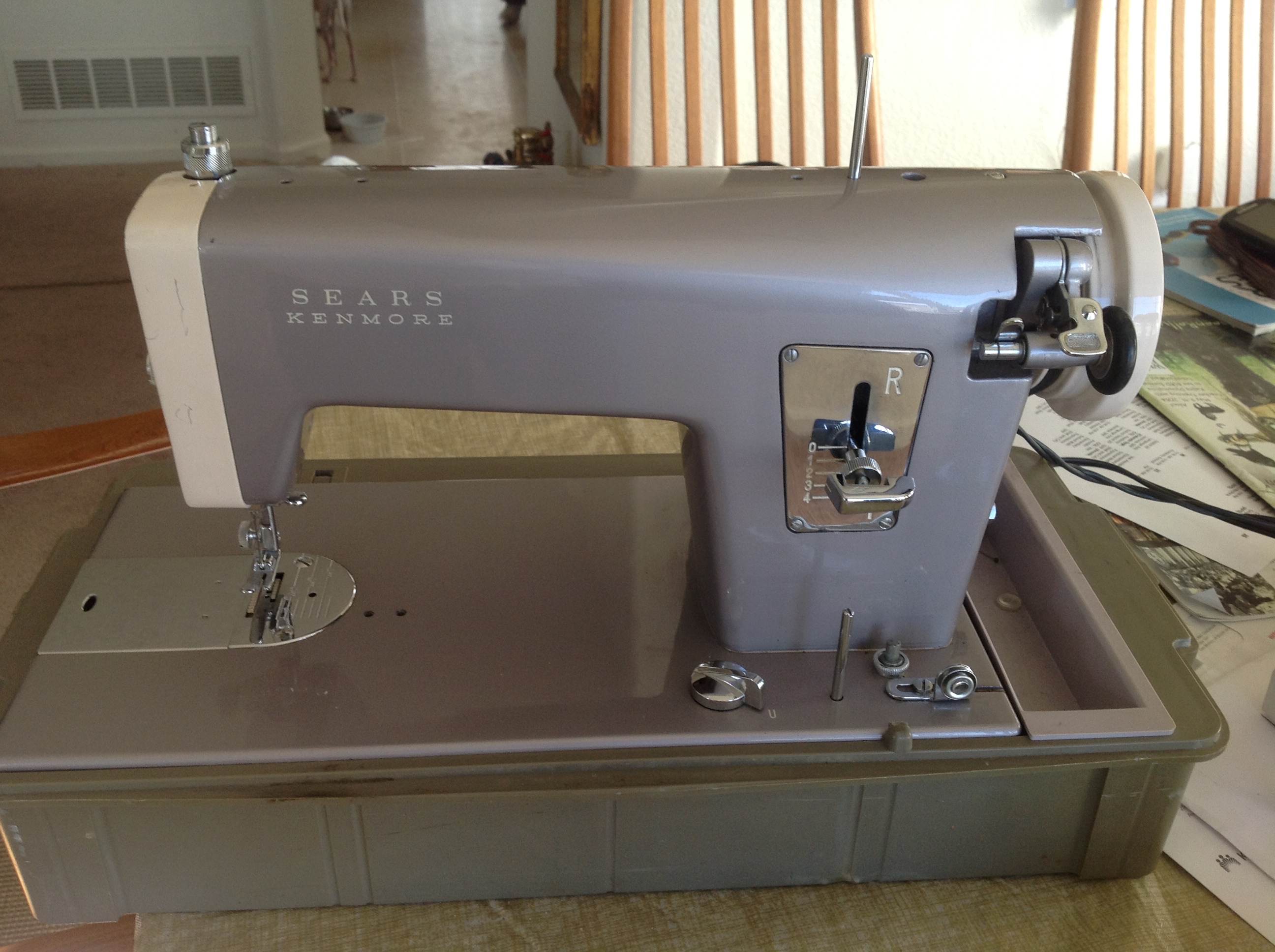 Sears Kenmore (1963 – 1966). This pearly mod-machine is a straight-stitch-only with a very powerful motor for industrial-grade sewing on thick, tough materials. It’s a heavy, all steel, fast machine lovingly named “bat out of hell” by my favorite machine master, Bob Juenemann (http://makeitsew.biz/)