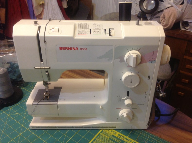 Most work is tackled on the Bernina 1008. Purchased used in 2001 with less than one year of use on it. I love the versatility of specialty presser feet by Bernina, and the very high stitch quality of this workhorse never fails.