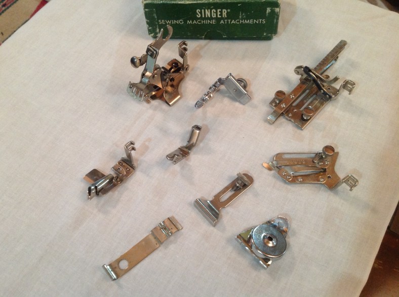All variety of attachment feet, including multiple zipper choices, pintuck feet, rufflers, and rolled hemmers.